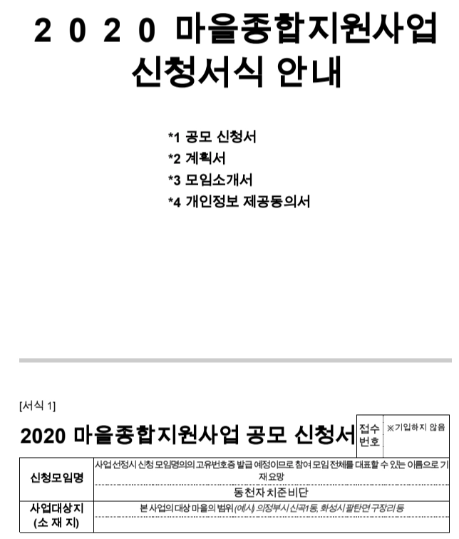 마을자치로 가는 길 공모사업 신청서