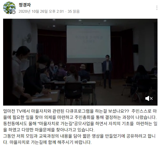 마을자치로 가는 길 동영상과 마을총회 홍보