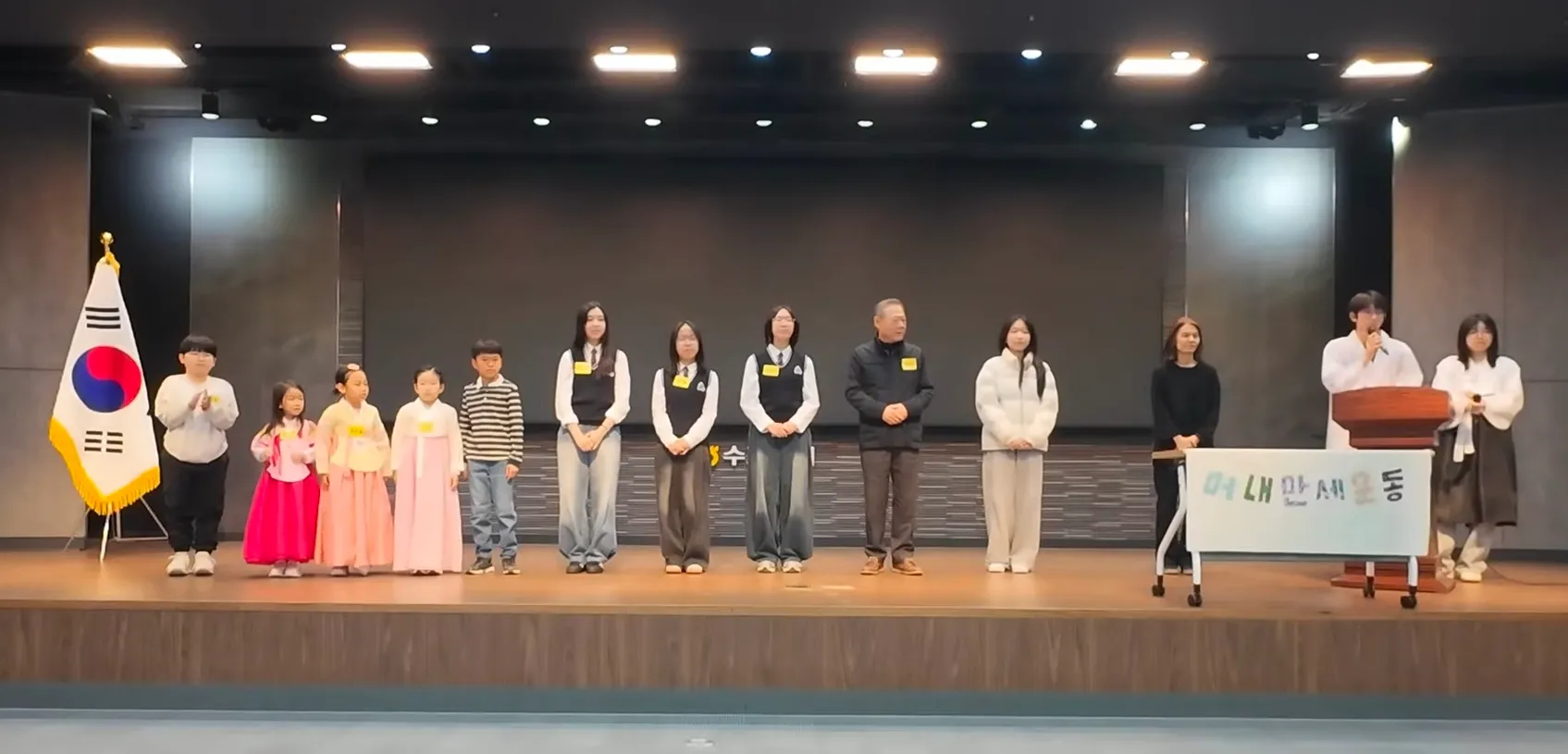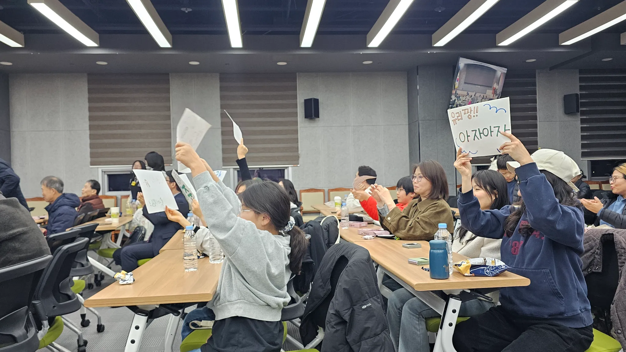 수지꿈 학교 학생들과 학부모들이 아자아자를 응원하고 있다.
