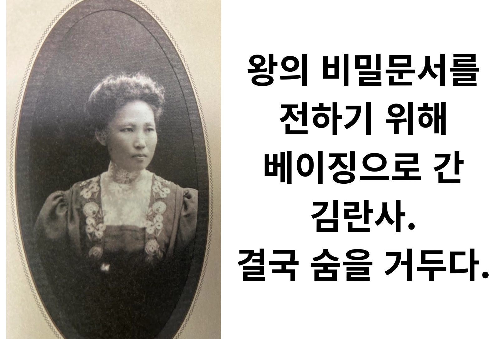 그럼 이제부터 조선의 독립 운동과 여성 교육에 앞장섰고, 유관순의 스승이기도 했던 김란사의 삶에 대해 이야기하겠습니다.